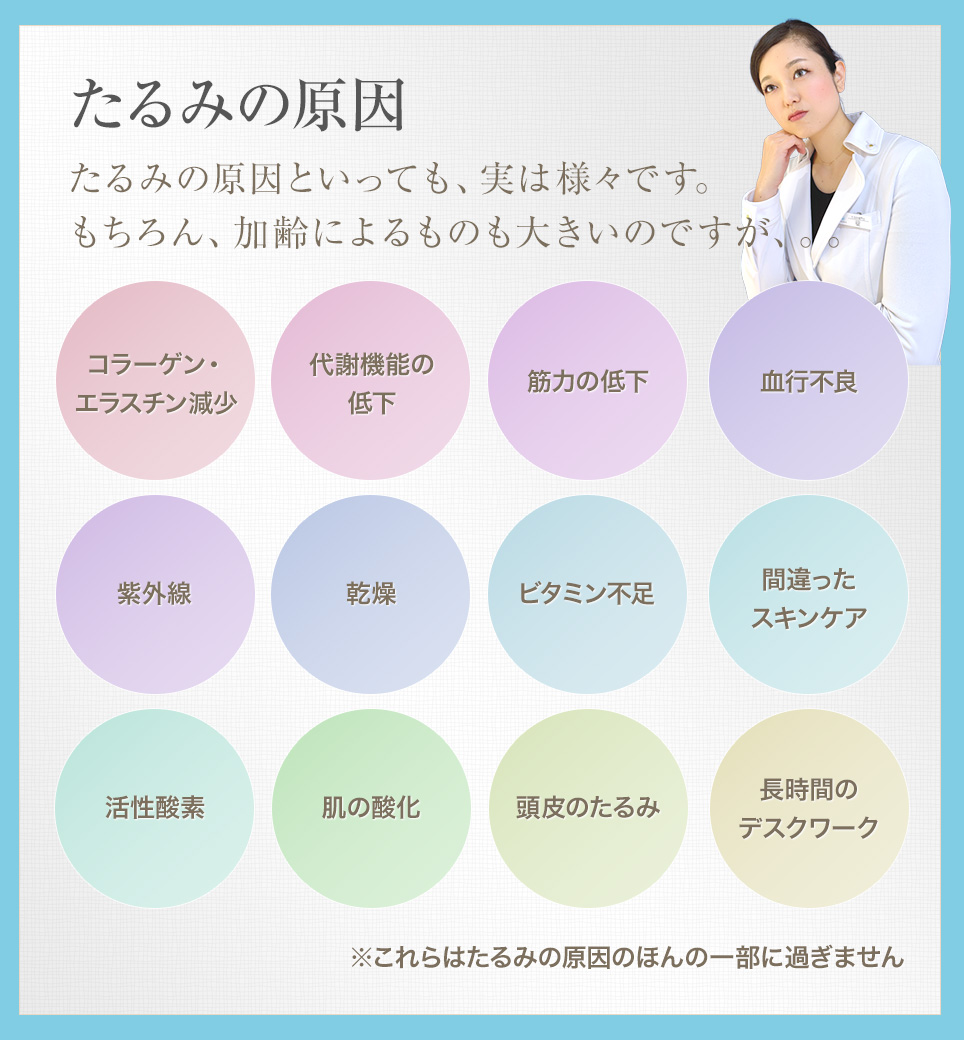 徹底的にたるみを改善するには3大原因全て改善しないと意味がありません。