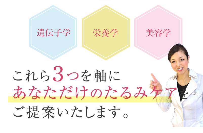 特に言われるのが、シミ、シワ、たるみの3大悩みですね。
